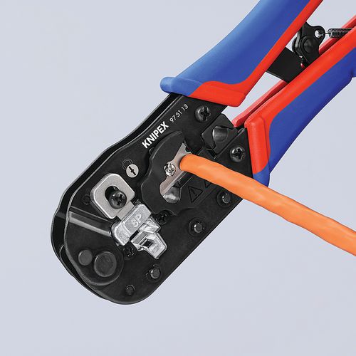 | Productnaam | Krimptang voor RJ45-western stekker 190 mm, Type nr.: 97 51 13, Gewicht: 345 g, Hoogte bek: 20 mm |