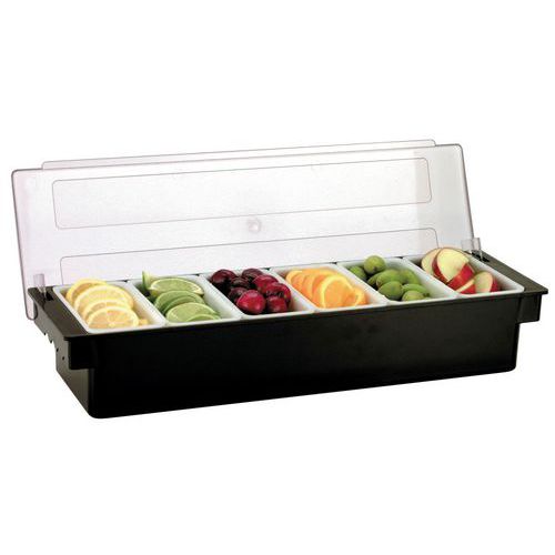 - Behuizing van zwart polypropyleen, deksel van transparant polycarbonaat.