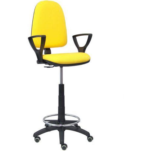 Kruk Ayna vaste arm - wiel voor parket - Piqueras y crespo. In hoogte verstelbaar met gascilinder. Mechanisme voor permanent contact waarmee de rugleuning in hoogte, diepte en hellingshoek kan worden versteld. De zitting en rugleuning zijn bekleed in de stof en kleur van uw keuze. Basis van zeer sterk polyamide met 5 spaken en 55 cm diameter, zwart. Parketwielen, 360° draaibaar met voetsteunring.