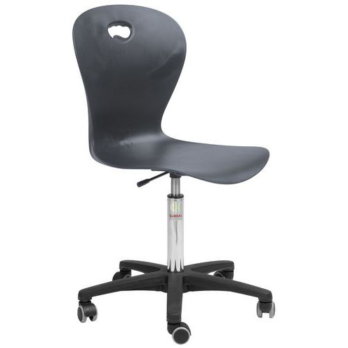 In hoogte verstelbare studentenstoel met voorgevormde zitting, comfortabel en stevig, ondersteunend en gemakkelijk schoon te maken.