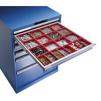Kunststof bakjes voor lades van de kasten van 102 cm. Vak voor lade. Set van 24 bakjes van 15 x 15 cm.