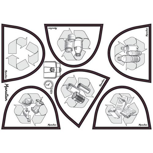 Geleverd met een set van 6 stickers voor afvalscheiding.