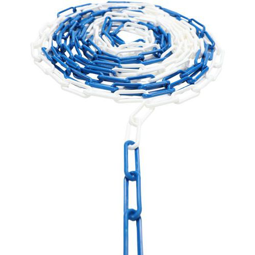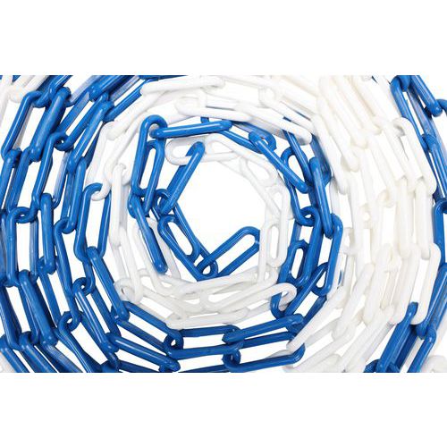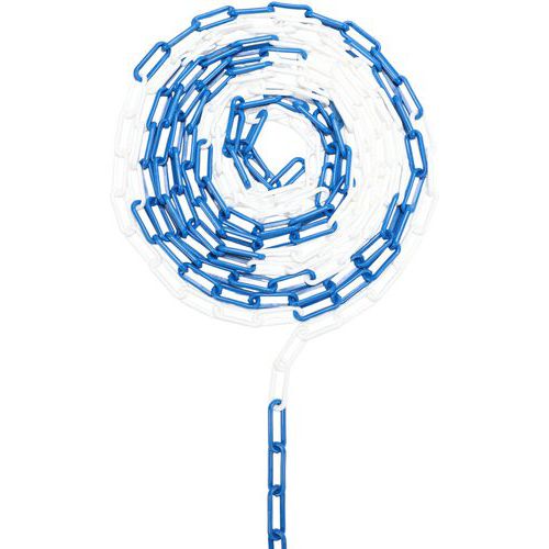 | Productnaam | Kunststof ketting in zak, Lengte: 2500 cm, Materialen: Polyethyleen, Kleur: Blauw/wit, Diameter Ø: 8 mm |