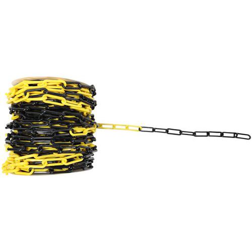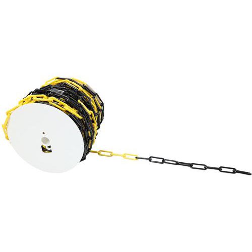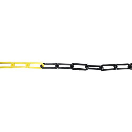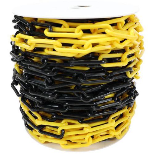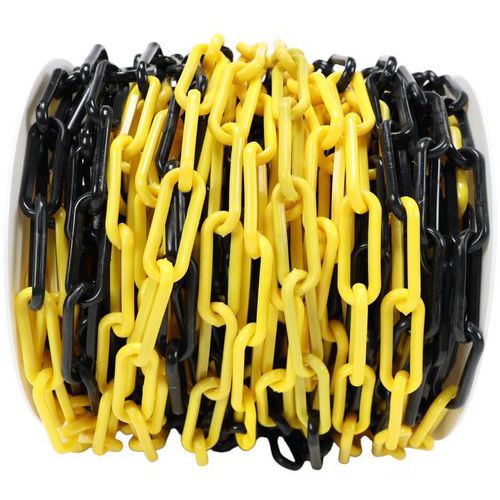 | Productnaam | Kunststof ketting op rol, Lengte: 5000 cm, Materialen: Polyethyleen, Kleur: Zwart/geel, Diameter Ø: 8 mm |
