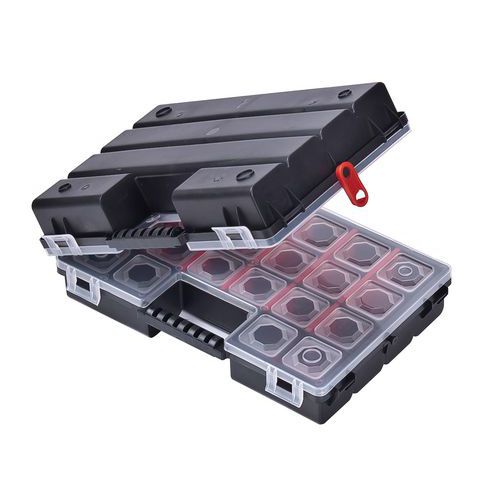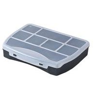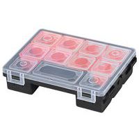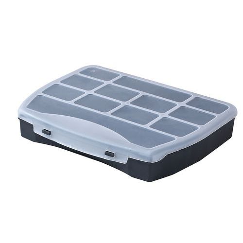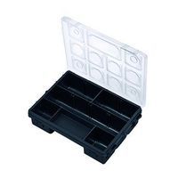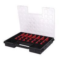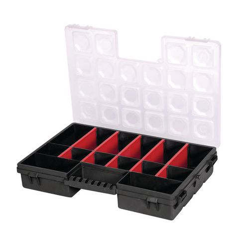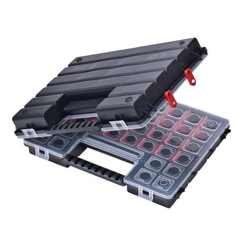 Kunststof organizer voor het opbergen van klein materiaal in 24 verstelbare vakken. Doorzichtig deksel om de inhoud te bekijken en rechtop te houden. Kan worden gesloten met kunststof clips. Eenvoudig te hanteren dankzij de stevige handgreep. Kunststof organizer voor het opbergen van klein materiaal in 24 verstelbare vakken. Doorzichtig deksel om de inhoud te bekijken en rechtop te houden. Kan worden gesloten met kunststof clips. Eenvoudig te hanteren dankzij de stevige handgreep.