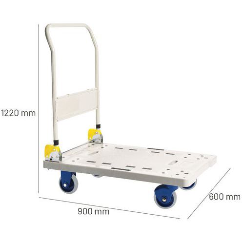 | Productnaam | Kunststof plateauwagen met neerklapbare duwbeugel, Max. belasting: 300 kg, Totale hoogte: 1220 mm |