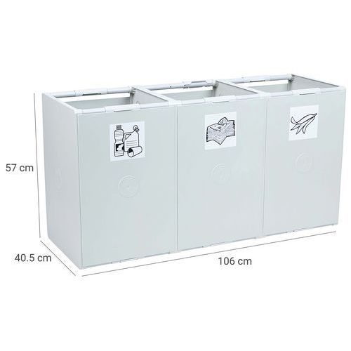 De deksels, de binnenbakken en de wagen zijn optioneel. Vergeet niet om uw afvalzakken te bestellen.