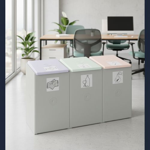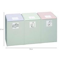 Recyclingmodule van kunststof. Creëer een ruimte voor afvalscheiding dankzij de verschillende gekleurde deksels. Inrichting naar uw behoeften. Gebruik deze modules voor een esthetisch resultaat.