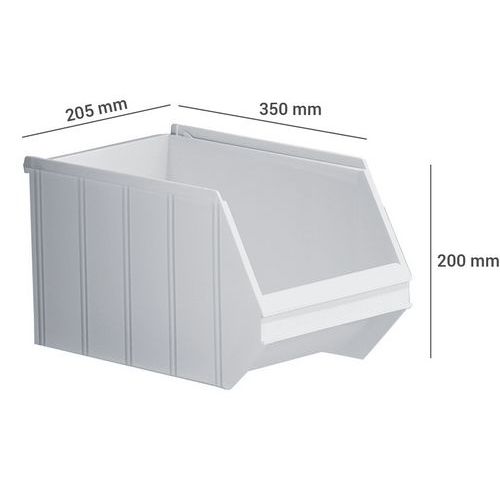 Kunststof stapelbak nr. 2- Lengte 350 mm, Totale inhoud: 14 L, Materiaal: Kunststof, Totale lengte: 350 mm