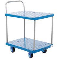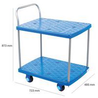 Kunststof wagen met 2 plateaus, Max. belasting: 150 kg, Totale hoogte: 873 mm, Totale breedte: 485 mm
