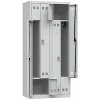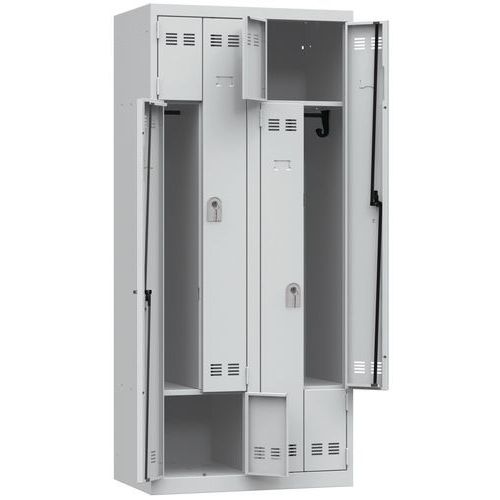 L-vormige, ruimtebesparende garderobekast 3 kolommen. Geeft elke gebruiker het voordeel van een opbergvak en een hangkast. De inhoud van de opbergruimte is zo maximaal te benutten. Veiligheidstips: - Plaats het meubel op een vlak oppervlak - Bevestig het aan de muur of een scheidingswand met een speciale bevestiging - Let erop dat u de aanbevolen maximale belasting niet overschrijdt en zorg voor een goede verdeling