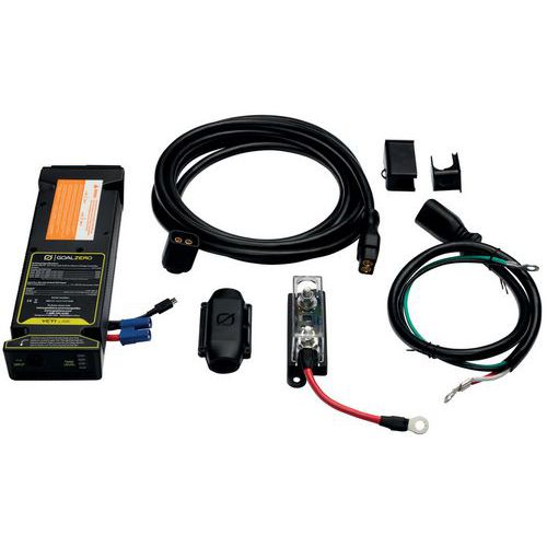 Integratieset voor auto Yeti Link bevat alles wat u nodig hebt om uw accu Yeti X (1000X en hoger) op te laden vanaf de dynamo van uw auto, zowel op de weg als geparkeerd.