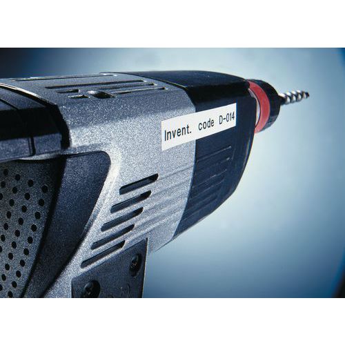 Zeer stevige houder voor polyester zelfklevend tape Dymo D1. Perfect op vlakke oppervlakken, voor vele toepassingen. Uitstekend bestand tegen UV, oliën, vetten en oplosmiddelen. Eenvoudig te verwijderen zonder lijmresten achter te laten. Verkrijgbaar in verschillende kleuren, breedtes en bodems. Zelfklevend polyester tape, gemaakt in Europa. Zelfklevende polyester tape gemaakt in Europa.