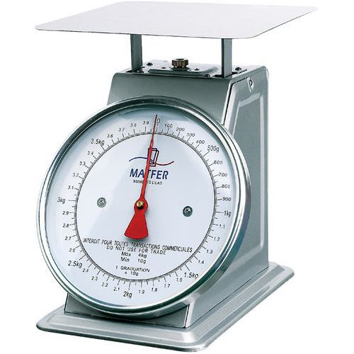 Plateau van rvs, frame van gelakt plaatstaal, brede wijzerplaat, zeer goed leesbaar, van hard kunststof, knop voor de nulstelling. Demper voor snelle afleesbaarheid. Gebruik verboden voor alle commerciële transacties.