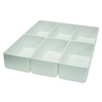 - Ladeblok met plateaus in verschillende kleuren om de diverse opbergruimtes te onderscheiden.