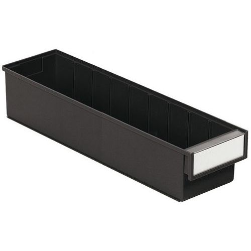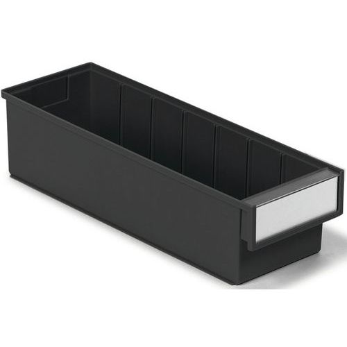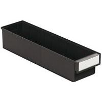 Ladebak ESD voor tussenschotten. Van half-geleidend polypropyleen. Het etiket over de volle breedte met bescherming kan worden gereinigd en kan eenvoudig worden gewisseld indien nodig, deze beschermingen en etiketten zijn niet half-geleidend. Gemaakt in de EU