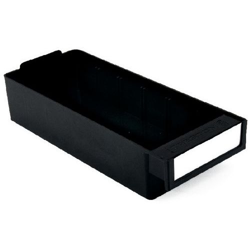 Ladebak ESD voor tussenschotten. Van half-geleidend polypropyleen. Het etiket over de volle breedte met bescherming kan worden gereinigd en kan eenvoudig worden gewisseld indien nodig, deze beschermingen en etiketten zijn niet half-geleidend. Gemaakt in de EU