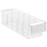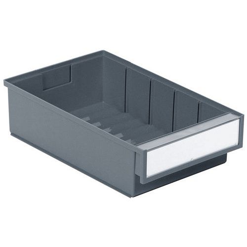 Bakken voor legplanken zijn ontworpen om te passen bij alle legborden, kasten, draaiende steunen en standaard industriële werkplekken. Ons assortiment bevat 11 bakken van verschillende maten. Verkrijgbaar in de volgende diepten: 3, 4, 5 en 6 mm. Iedere lade heeft ruimte voor een etiket en heeft een deksel. Materiaal: PS = transparant polystyreen: gebruikstemperatuur -4 °C tot +55 °C. PP = gekleurd polypropyleen: temperatuur van -2 °C tot +75 °C. Niet vatbaar voor oliën en de meeste zuren en oplosmiddelen. Gemaakt in de EU