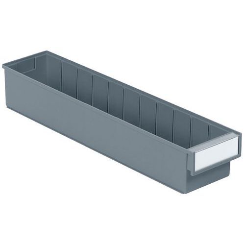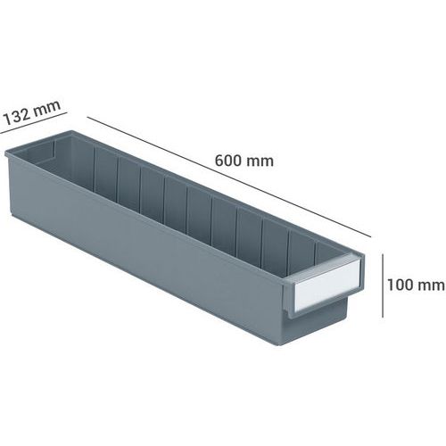 Bakken voor legplanken zijn ontworpen om te passen bij alle legborden, kasten, draaiende steunen en standaard industriële werkplekken. Ons assortiment bevat 11 bakken van verschillende maten. Verkrijgbaar in de volgende diepten: 3, 4, 5 en 6 mm. Iedere lade heeft ruimte voor een etiket en heeft een deksel. Materiaal: PS = transparant polystyreen: gebruikstemperatuur -4 °C tot +55 °C. PP = gekleurd polypropyleen: temperatuur van -2 °C tot +75 °C. Niet vatbaar voor oliën en de meeste zuren en oplosmiddelen. Gemaakt in de EU