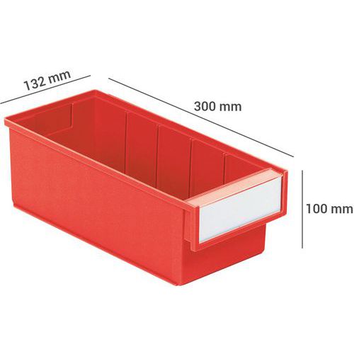 Bakken voor legplanken zijn ontworpen om te passen bij alle legborden, kasten, draaiende steunen en standaard industriële werkplekken. Ons assortiment bevat 11 bakken van verschillende maten. Verkrijgbaar in de volgende diepten: 3, 4, 5 en 6 mm. Iedere lade heeft ruimte voor een etiket en heeft een deksel. Materiaal: PS = transparant polystyreen: gebruikstemperatuur -4 °C tot +55 °C. PP = gekleurd polypropyleen: temperatuur van -2 °C tot +75 °C. Niet vatbaar voor oliën en de meeste zuren en oplosmiddelen. Gemaakt in de EU