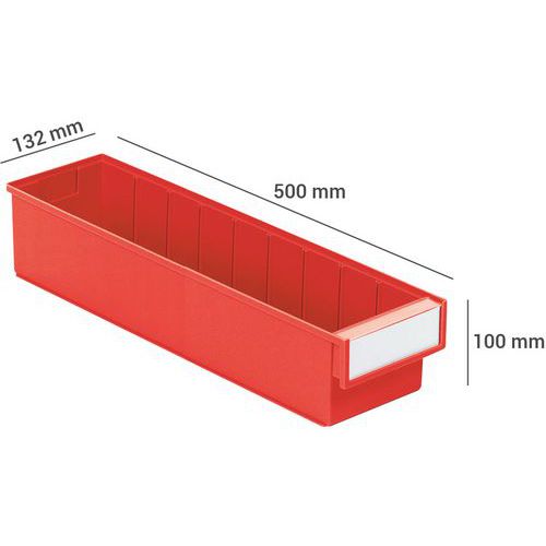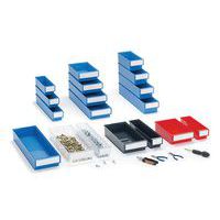 Bakken voor legplanken zijn ontworpen om te passen bij alle legborden, kasten, draaiende steunen en standaard industriële werkplekken. Ons assortiment bevat 11 bakken van verschillende maten. Verkrijgbaar in de volgende diepten: 3, 4, 5 en 6 mm. Iedere lade heeft ruimte voor een etiket en heeft een deksel. Materiaal: PS = transparant polystyreen: gebruikstemperatuur -4 °C tot +55 °C. PP = gekleurd polypropyleen: temperatuur van -2 °C tot +75 °C. Niet vatbaar voor oliën en de meeste zuren en oplosmiddelen. Gemaakt in de EU