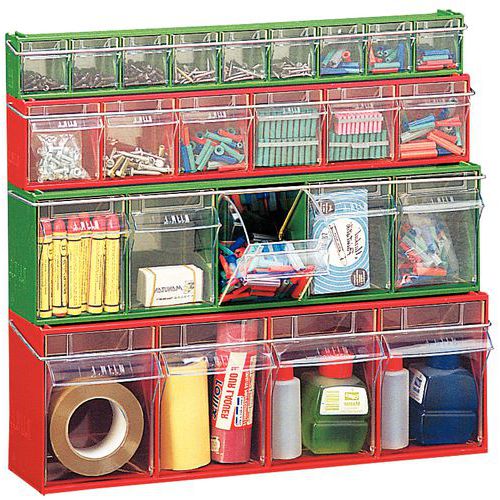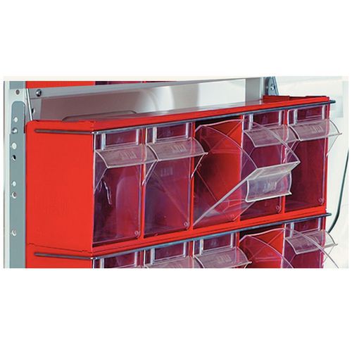 Voor het opbergen van uw kleine materialen. Met verwijderbare transparante kantelbakken. De ladeblokken kunnen eenvoudig worden gecombineerd door ze te koppelen met klemmen. Afzonderlijk te bestellen: een veiligheidsstang, die voorkomt dat de bakken kunnen vallen.