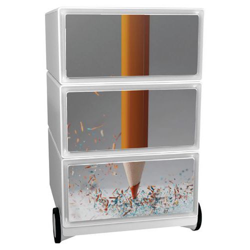 Ladeblok met 3 laden Easy Office Décor. Gemonteerd geleverd. Ladefront van ABS. Voorzien van 4 wielen, waarvan 2 in alle richtingen draaibare wielen aan de achterzijde. Breedte, hoogte en diepte van de laden: 32,5 x 13,3 x 40,5 cm. Gemaakt in de EU Klantgarantie : 10 jaar