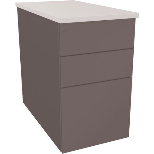 Ladeblok metaal creeert extra werkruimte en biedt toegankelijke, efficiënte en veilige opbergruimte. Voegt met de strakke lijnen een eigentijds accent toe aan de werkomgeving. Deze metalen ladeblokken onderscheiden zich met een robuuste structuur en een verfijnde afwerking: onzichtbare wielen, in het front geïntegreerde handgreep, topblad. Hangmappenlade volledig uittrekbaar