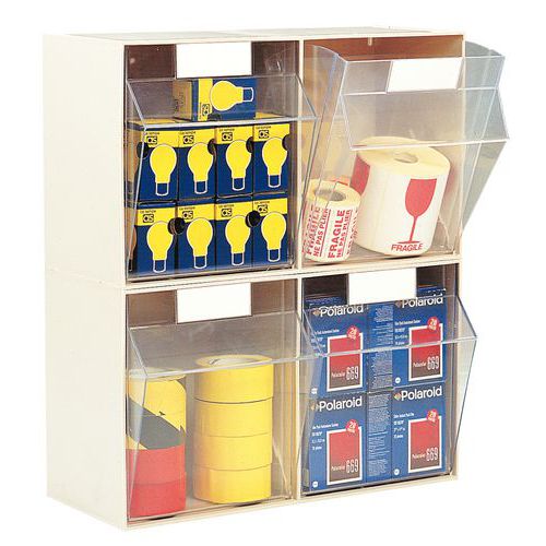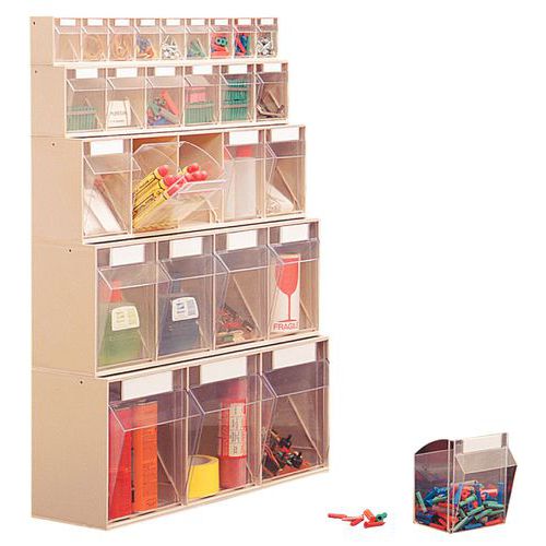 - Berg uw artikelen overzichtelijk op in een rekkensysteem met kantelbakken.