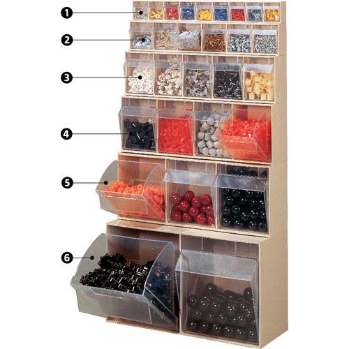 - Stapel of hang de 6 typen kunststof houders eenvoudig op.