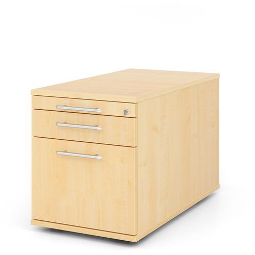 Ladeblok verrijdbaar met 2 laden kunststof handgreep - D 80 cm. Hangmand voor registerfolders. Centrale vergrendeling. Ondersteunt een belasting van maximaal 25 kg. Met 8 mm observatiewand.