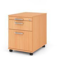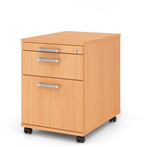 Ladeblok verrijdbaar met 2 laden verchroomd handvat - D 58 cm. Centrale vergrendeling. Gedeeltelijke opening tot 75%. Lade ORGA.
