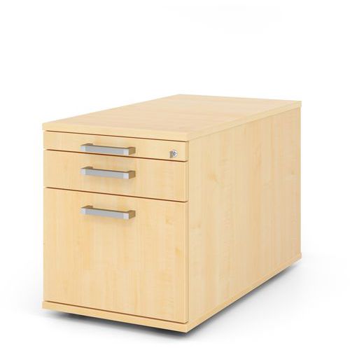 Ladeblok verrijdbaar met 2 laden verchroomd handvat - D 80 cm. Hangmand voor registerfolders. Centrale vergrendeling. Ondersteunt een belasting tot 25 kg. Met observatiewand van 8 mm.
