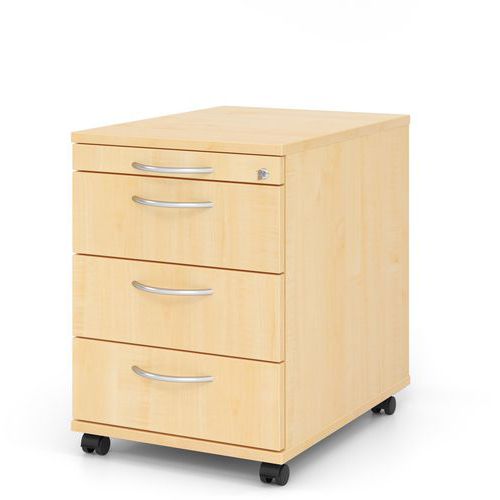 Ladeblok verrijdbaar met 3 laden gebogen handvat D 58 cm. Centrale vergrendeling. Lade ORGA.