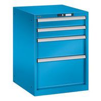 Grote stabiliteit van het geheel met een draagvermogen tot 4 t, laden met een draagvermogen tot 75 of 200 kg Optimaal gebruik dankzij de totale uitbreiding en de optimale hoogte aan de voorzijde van de laden Uitstekende bescherming tegen stof, vloeistoffen en mechanische slijtage dankzij een gesloten geheel met een oppervlak dat bestand is tegen schokken en slijtage Onfeilbare veiligheid met anti-losmaaksysteem dat voorkomt dat de lade eruit valt en met individuele ladeblokkering (antikantelbeveiliging) Bescherming tegen corrosie dankzij een elektrostatische dompellak en spuitlak Optimale opbergmogelijkheden en organisatie dankzij het materiaal voor indeling van LISTA, geschikt voor elke toepassing en dankzij de laden die zijn voorzien van uitsparingen en perforaties Professionele etikettering met de etiketteersoftware van LISTA Script en de inklapbare grijpstang voor de invoering van etiketten Perfect stille verplaatsing dankzij de rail zonder verbindingsstuk Max. belasting (kg) : 75