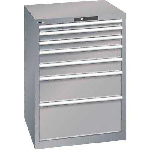 Kast met 7 laden 36x36E die tot 200 kg kan dragen. Optimaal gebruik dankzij de totale uitbreiding en optimale frontale hoogte van de laden. Uitstekende bescherming tegen stof, vloeistoffen en mechanische slijtage dankzij een gesloten frame met schok- en slijtvast oppervlak. Antikantelsysteem. Bescherming tegen corrosie dankzij onderdompelingsverf door elektroforese en spuitverf. Geoptimaliseerde opslag en organisatie dankzij het lista onderverdelingsmateriaal dat is aangepast aan elke toepassing en de laden met sleuven en perforaties. Professionele etikettering met de etiketteersoftware LISTA Script en de neerklapbare grijpstang voor het inbrengen van etiketten. Perfect geruisloos rijden dankzij de glijbaan zonder dwarsligger. Veiligheidstips: - installeer het meubilair op een vlak oppervlak - bevestig het op een muur of scheidingswand met een geschikte bevestiging - ervoor te zorgen dat de maximale aanbevolen belasting niet wordt overschreden, evenals de juiste verdeling ervan Max. belasting (kg) : 200