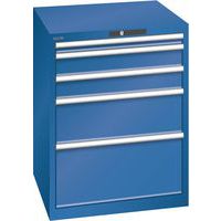 Kast met 5 laden die tot 200 kg kunnen dragen. Optimaal gebruik dankzij de totale uitbreiding en optimale frontale hoogte van de laden. Uitstekende bescherming tegen stof, vloeistoffen en mechanische slijtage dankzij een gesloten frame met schok- en slijtvast oppervlak. Antikantelsysteem. Bescherming tegen corrosie dankzij onderdompelingsverf door elektroforese en spuitverf. Geoptimaliseerde opslag en organisatie dankzij het lista onderverdelingsmateriaal dat is aangepast aan elke toepassing en de laden met sleuven en perforaties. Professionele etikettering met de etiketteersoftware LISTA Script en de neerklapbare grijpstang voor het inbrengen van etiketten. Perfect geruisloos rijden dankzij de glijbaan zonder dwarsligger. Max. belasting (kg) : 200