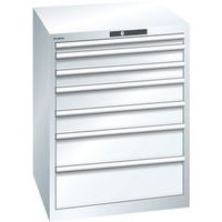 Kast met 7 laden die tot 75 kg kunnen dragen. Optimaal gebruik dankzij de totale uitbreiding en optimale frontale hoogte van de laden. Uitstekende bescherming tegen stof, vloeistoffen en mechanische slijtage dankzij een gesloten frame met schok- en slijtvast oppervlak. Antikantelsysteem. Bescherming tegen corrosie dankzij onderdompelingsverf door elektroforese en spuitverf. Geoptimaliseerde opslag en organisatie dankzij het lista onderverdelingsmateriaal dat is aangepast aan elke toepassing en de laden met sleuven en perforaties. Professionele etikettering met de etiketteersoftware LISTA Script en de neerklapbare grijpstang voor het inbrengen van etiketten. Perfect geruisloos rijden dankzij de glijbaan zonder dwarsligger.