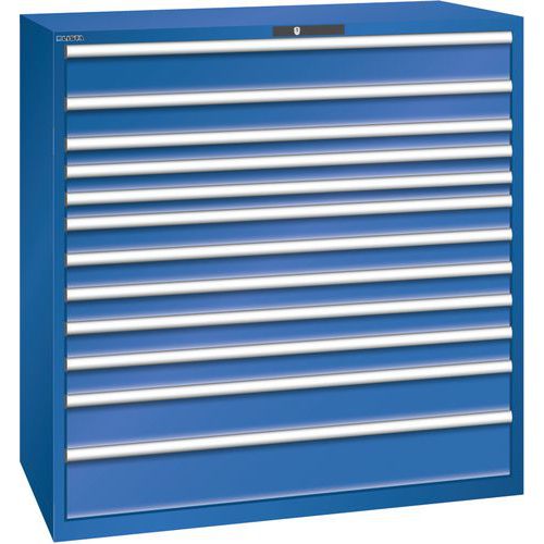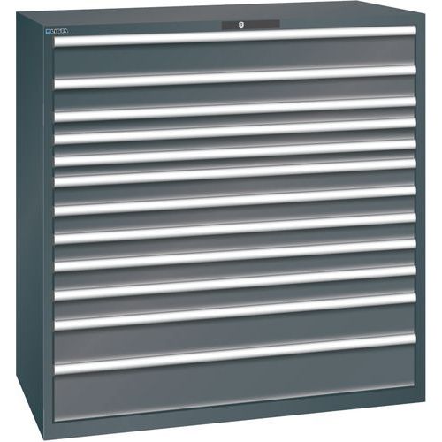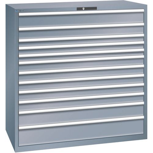 Kast 78x36E Lista met 12 laden die tot 200 kg kunnen dragen. Optimaal gebruik dankzij de totale uitbreiding en optimale frontale hoogte van de laden. Uitstekende bescherming tegen stof, vloeistoffen en mechanische slijtage dankzij een gesloten frame met schok- en slijtvast oppervlak. Onfeilbare veiligheid, anti-stallbeveiliging die voorkomt dat de lade valt en individuele vergrendeling van laden (anti-kantelsysteem). Corrosiebescherming met elektroforese onderdompelingsverf en spuitverf. Geoptimaliseerde opslag en organisatie dankzij de LISTA-onderverdelingsapparatuur die is aangepast aan elke toepassing en laden met sleuven en perforaties. Professionele etikettering met LISTA Script-etiketteringssoftware en opvouwbare grijpstang voor het inbrengen van etiketten. Perfect stille beweging dankzij de glijbaan zonder dwarsligger. Max. belasting (kg) : 200