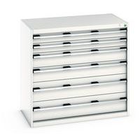 Ladekast met 6 laden Cubio met verstevigingshoeken voor een betere stijfheid. Maximaal toegestane belasting: 1 ton. Standaardladen voor lasten van 75 kg. Gemonteerd op lagers met 100% telescopische verlenging (volledige opening). Ergonomische handgrepen voor handdoorgang van boven of onder, standaard ladeblokkeringssysteem, individuele vergrendeling van laden als optie. Veiligheidstips: - installeer het meubilair op een vlak oppervlak - bevestig het op een muur of scheidingswand met een geschikte bevestiging - ervoor te zorgen dat de maximale aanbevolen belasting niet wordt overschreden, evenals de juiste verdeling ervan Gemaakt in het UK Max. belasting (kg) : 1500