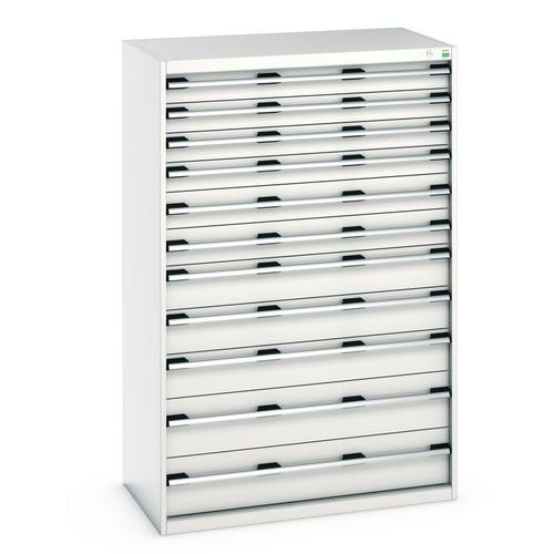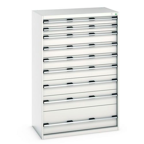 Verstevigingswinkelhaken voor meer stevigheid, Maximaal toelaatbare belasting: 1 ton Laden standaard voor lasten van 75 kg. Gemonteerd op lagers met een 100% telescopisch verlengstuk (volledige opening). Ergonomische handgrepen voor van boven of van onderen vastpakken, standaard met blokkeersysteem van laden, individuele vergrendeling van de laden als optie verkrijgbaar. Veiligheidstips: - Plaats het meubel op een vlak oppervlak - Bevestig het aan de muur of een scheidingswand met een speciale bevestiging - Let erop dat u de aanbevolen maximale belasting niet overschrijdt en zorg voor een goede verdeling Gemaakt in het UK Max. belasting (kg) : 1500