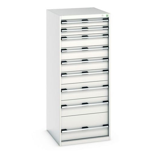 | Productnaam | Ladekast met 9 lades Cubio, Max. belasting: 1500 kg, Materiaal: Staal, Totale hoogte: 1600 mm |
