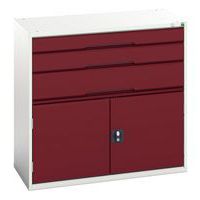 Ladeblok van gelast plaatstaal met verstevigingen voor gebruik in een industriële omgeving. Ladebevestiging op draagrails met lagers die een maximaal draagvermogen hebben van 60 kg. Eenvoudige opening en sluiting, zelfs bij volledige last. Sluiting van de lades met centrale vergrendeling. Een unieke diepte van 550 mm. Let op, veiligheidsadviezen: plaats het meubel op een vlak oppervlak, bevestig het aan de muur of een scheidingswand met geschikt bevestigingsmateriaal. Respecteer de aanbevolen maximale belasting en zorg voor een goede gewichtsverdeling. Gemaakt in het UK Max. belasting (kg) : 1000 Max. belasting per legbord (kg) : 75