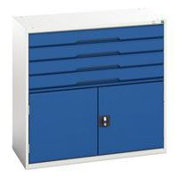 Ladeblok van gelast plaatstaal met verstevigingen voor gebruik in een industriële omgeving. Een unieke diepte van 550 mm. Ladebevestiging op draagrails met lagers die een maximaal draagvermogen hebben van 60 kg. Eenvoudige opening en sluiting, zelfs bij volledige last. Sluiting van de laden met centrale vergrendeling Veiligheidstips: - Plaats het meubel op een vlak oppervlak - Bevestig het aan de muur of een scheidingswand met een speciale bevestiging - Let erop dat u de aanbevolen maximale belasting niet overschrijdt en zorg voor een goede verdeling Gemaakt in het UK Max. belasting per legbord (kg) : 75 Max. belasting (kg) : 1000
