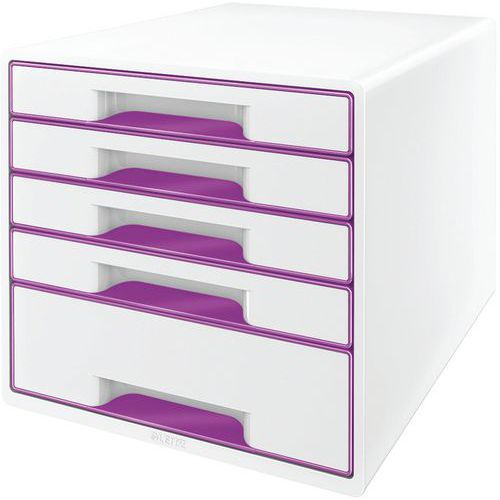 Past bij andere producten uit het WOW-assortiment, voor een perfect ingericht kantoor of thuiskantoor. 2 grote laden voor algemene voorwerpen zoals kabels, tijdschriften of zelfs keukenbenodigdheden en 2 kleine laden voor documenten of kantoorbenodigdheden. Laden met geavanceerd glijsysteem en aanslagen die voorkomen dat de lade eruit valt. Uniek sluitsysteem: eenmaal drukken en de lade blijft gesloten. Geleverd met een transparante opbergtray voor het veilig opbergen van kleine bureau-artikelen zoals pennen, paperclips, etc. Discreet gesloten laden met modern design en ergonomische uitsparing om de lade makkelijk te openen. Slipvaste rubberen beschermvoeten, stapelbaar tot 3 hoog voor ruimtebesparing. Via een gat in de bodem van de kleine laden kunnen documenten makkelijk worden opgetild en naar buiten worden getrokken. Ontwerp en print online jouw eigen labels op www.leitz-easyprint.com.