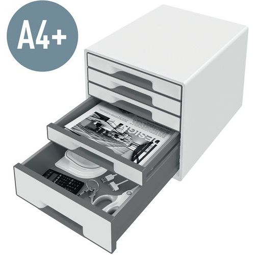 4 laden (2 grote en 2 kleine). Aantrekkelijk en stijlvol, in twee WOW-kleuren met glanzende afwerking.