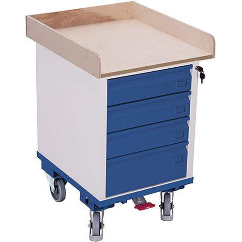 Schuifladekast verrijdbaar met laadvlak met rand, Met lade: ja, Max. belasting: 150 kg, Aantal laden: 4