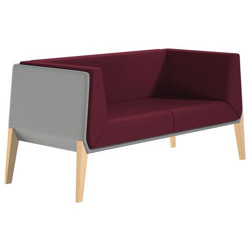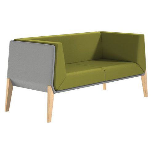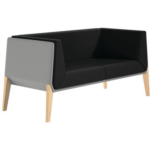 - Tweekleurige bank met twee zitplaatsen met eigentijdse rechthoekige vorm.