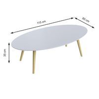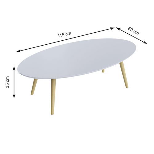 Lage tafel Scandi, Type onderstel: 4 poten, Breedte: 115 cm, Vorm: Ovaal, Tafelblad kleur: Wit, Diepte: 60 cm Lage tafel Scandi, Type onderstel: 4 poten, Breedte: 115 cm, Vorm: Ovaal, Tafelblad kleur: Wit, Diepte: 60 cm