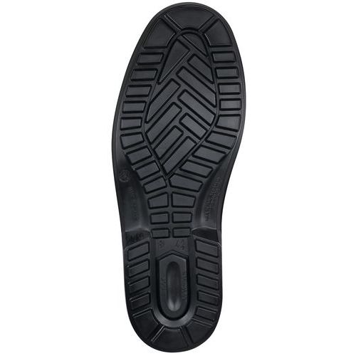 Veiligheidsschoen van volnerfleder van 1,6-1,8 mm dik, waterafstotend Model van 0% metaal, ideaal voor gebruik in gebieden met metaaldetectoren (luchthavens, magazijnen) Elegante schoen met voering van leer, zeer comfortabel, optimale ventilatie biedt uniek comfort Antislipzool met afgeschuinde randen, waardoor de noppen onzichtbaar zijn Brede, comfortabele schoen, zeer hoog comfortniveau, schokabsorberende hak en ongehaakte hiel